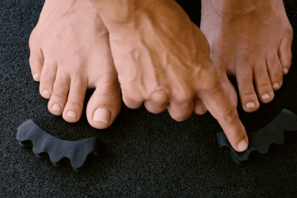 1. Place the toe spacers in front of your toes. Make sure the big toe spacer aligns with your big toe.